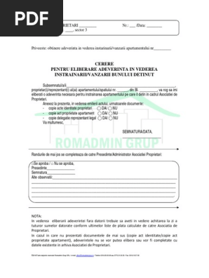 Adeverinta Asociatia De Proprietari Pentru Vanzare Apartament