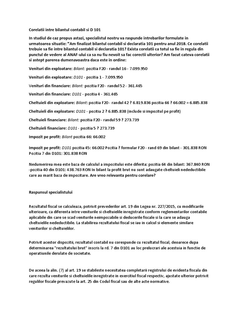 Corelatii Intre Bilantul Contabil Si D 101