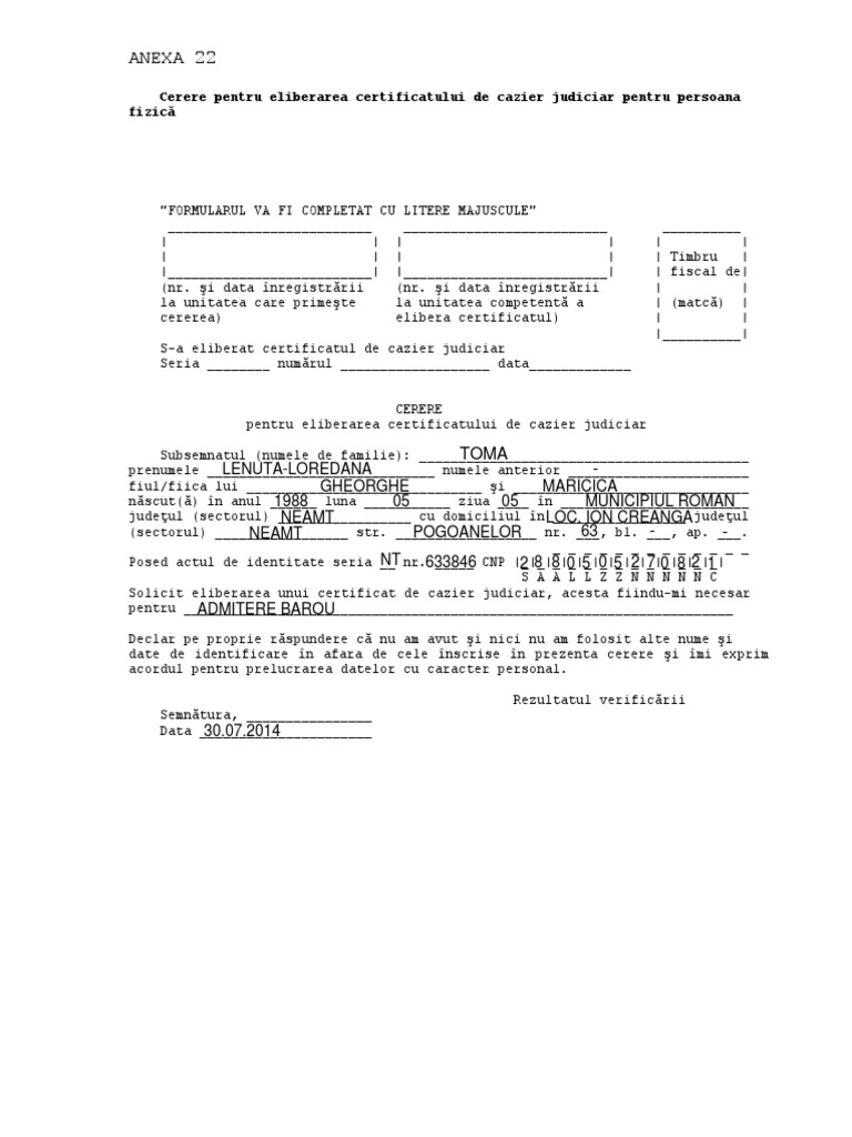 Cerere Tip Pentru Eliberarea Cazierului Judiciar Rumah Zul
