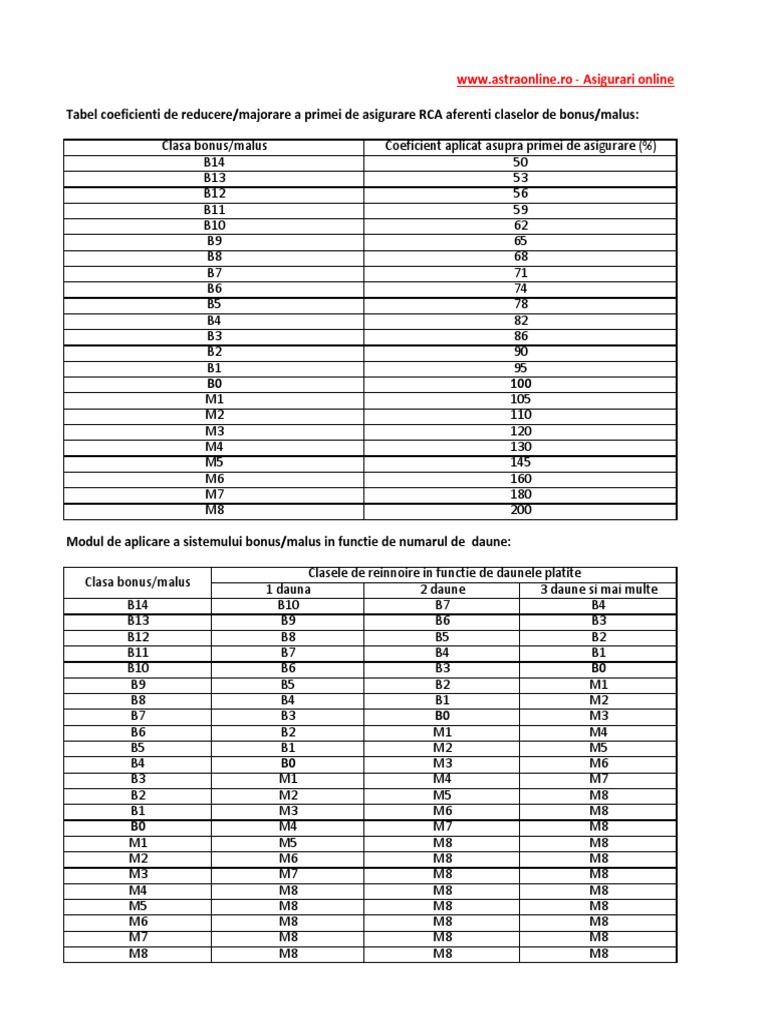 Tabel Coeficienti Clase De Bonus Malus Rca