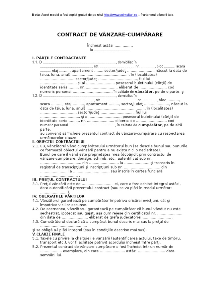 Contract Vanzare Cumparare Format Word Easysitesnow
