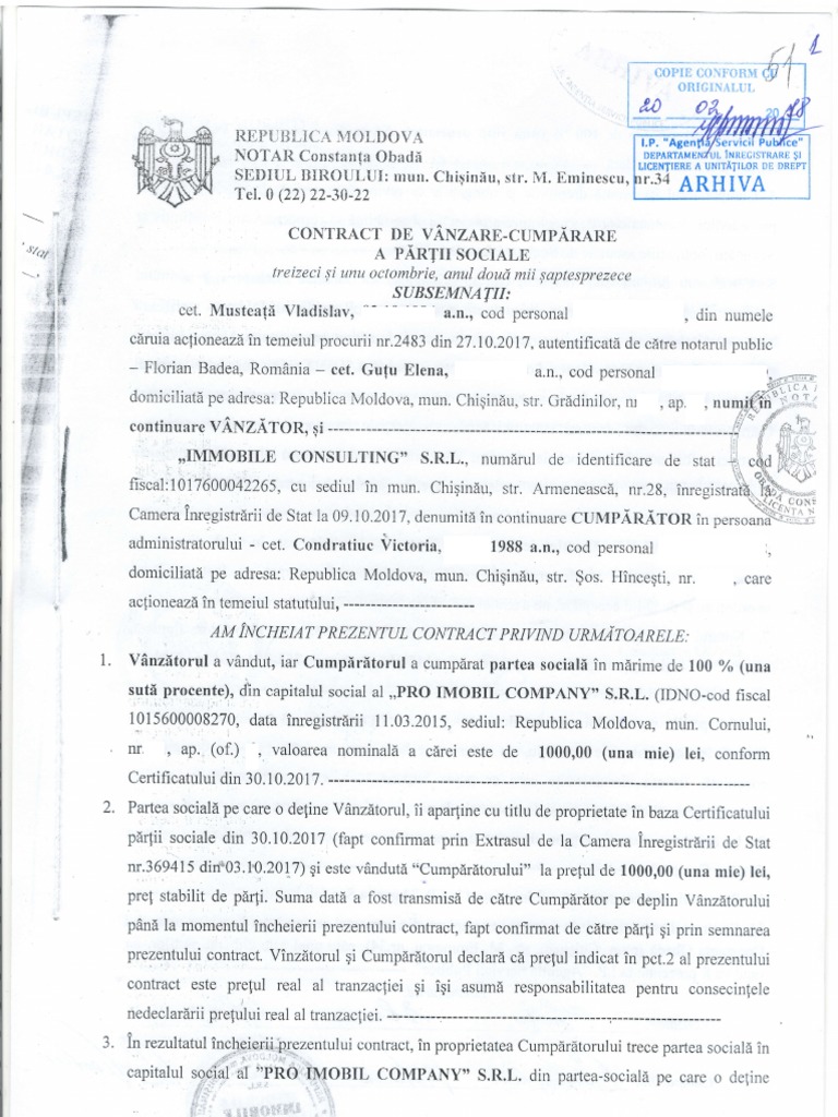 Contract De Vanzare Cumpărare Pro Imobil Company Edited