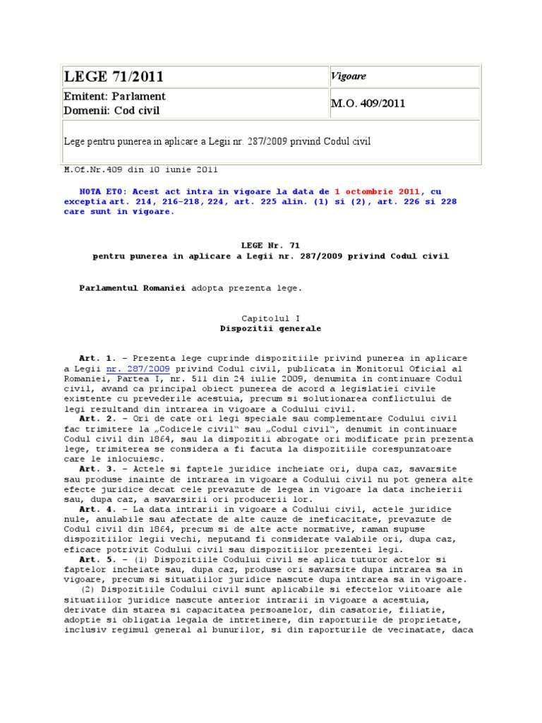 Lege Aplicare Cod Civil