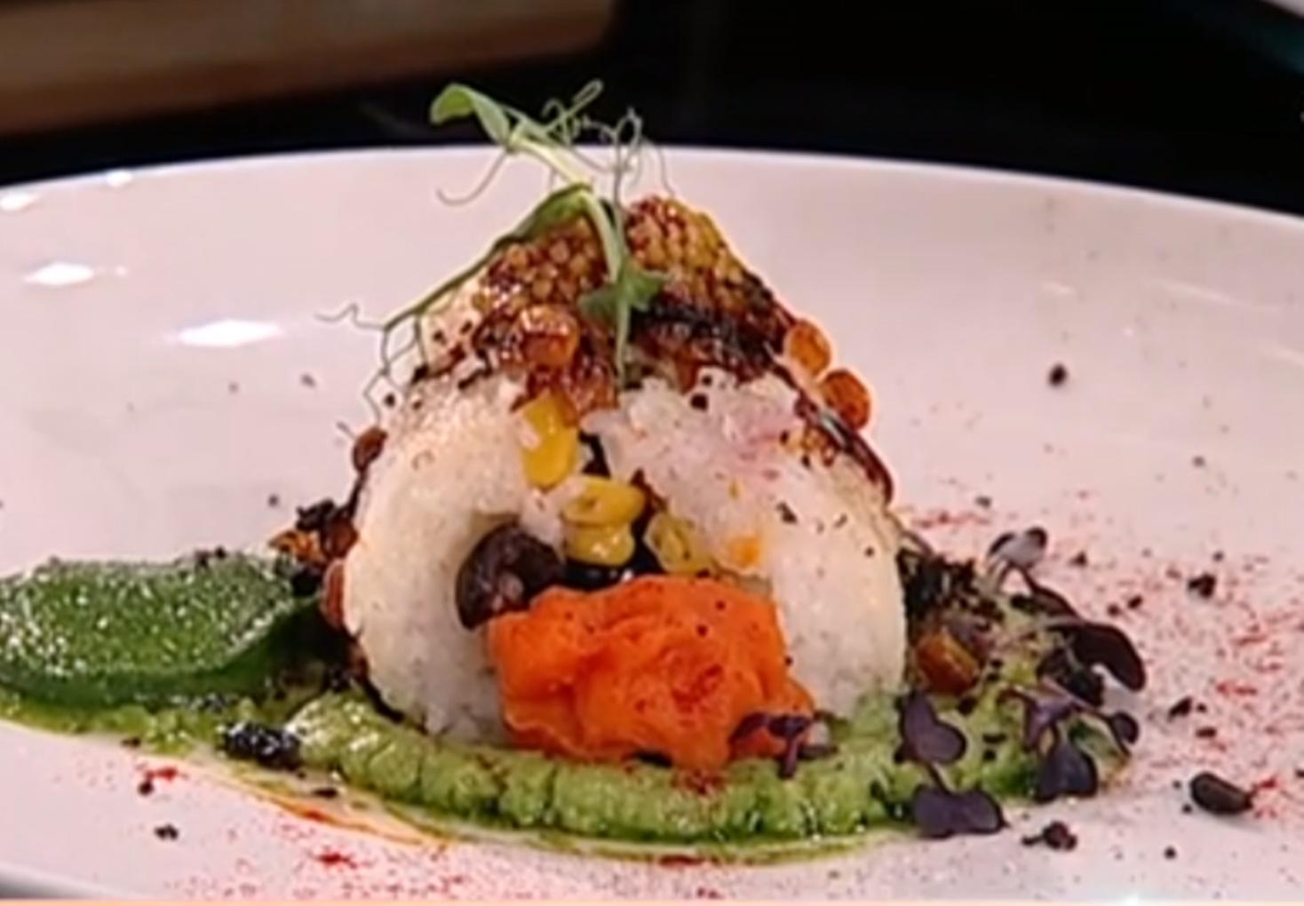 Rețetă De Post Ruladă De Orez Cu Porumb Dulce și Măsline Servită Cu Sosuri Cremoase De Mazăre și Morcovi