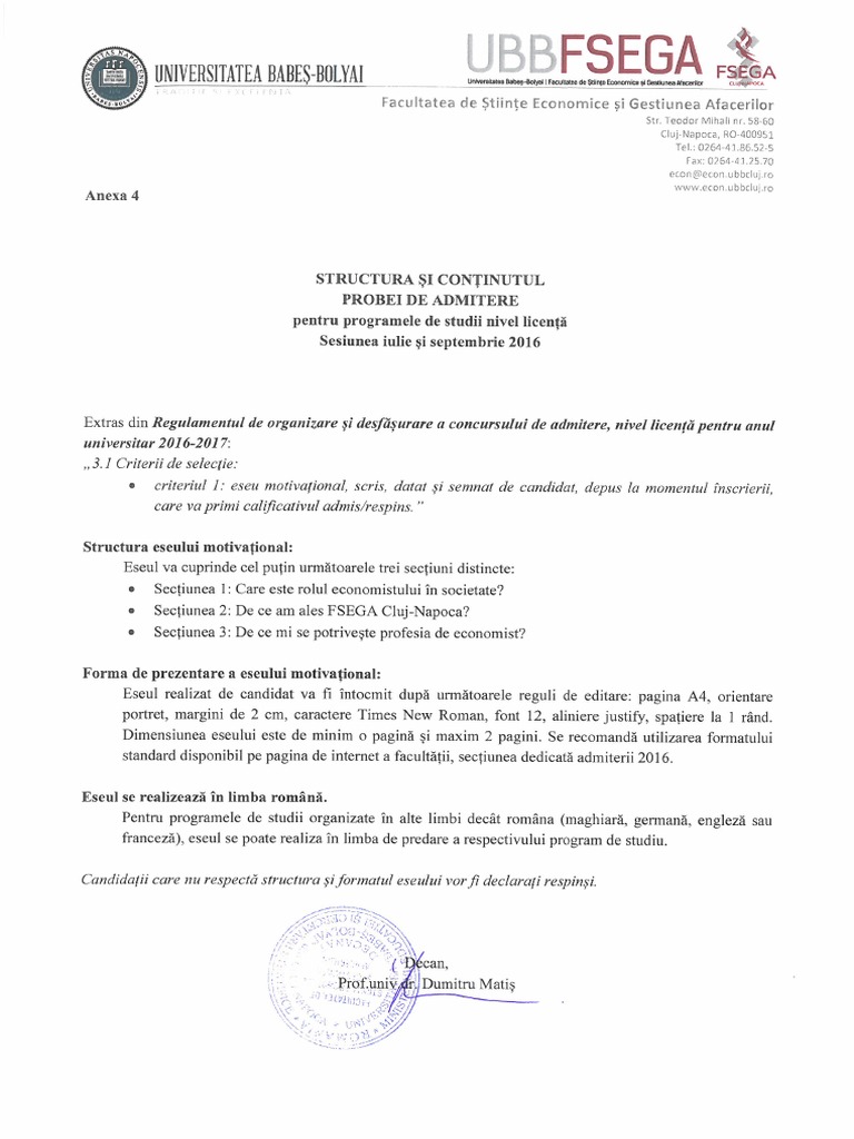 Proba de concurs eseu motivațional eseul motivațional va pune în valoare aspecte legate de motivația participării la programul de licență în științele educației pedagogie psihopedagogie specială și va fi depus odată cu dosarul de concurs la înscriere.