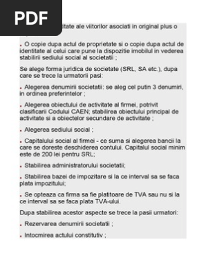Doc Acte Necesare Pentru Infiintarea Unei Firme Sau Societati Comerciale Madalin Tudorache Academia Edu